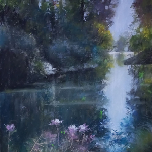 Il portera sur le thème du paysage, rivières et marines. Le travail sur fond sombre coloré se fera sur du papier aquarelle. Le fond sera réalisé avec de la gouache.